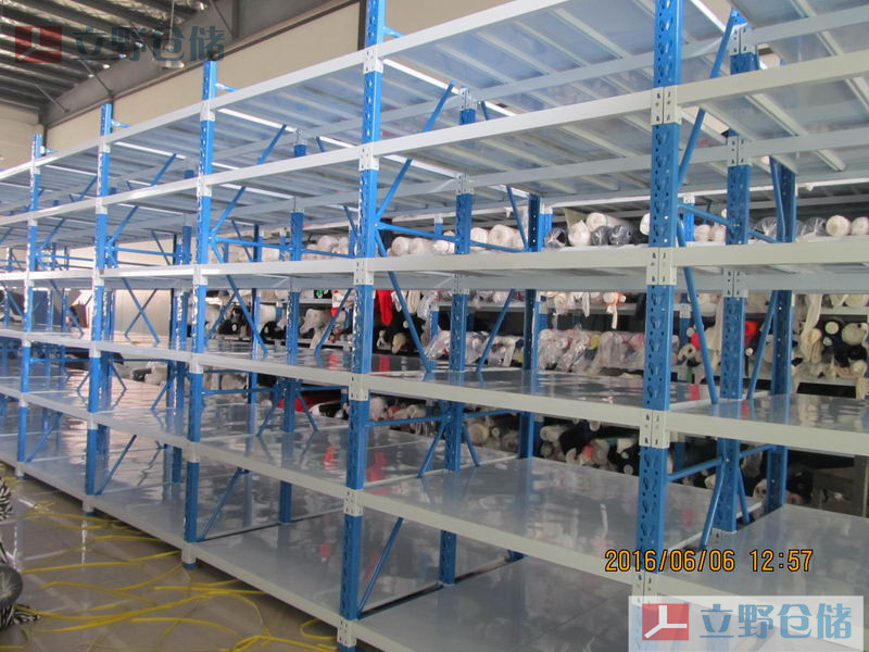 紡織面料貨架一般可采用兩立柱或三立柱樣式,根據卷狀面料的直徑和長度,來設計貨架的規格。一般情況下,常用的面料貨架都采用三立柱結構,橫斜撐采用可拆卸的結構,安裝方便,組合便捷。是眾多紡織面料企業倉庫最常用的產品。